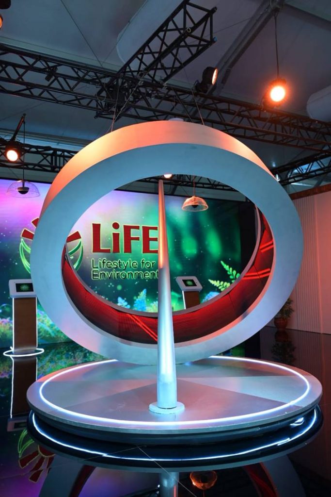 The Pavilion has been designed to send out the message of LiFE through various audio-visuals, Logo, 3D models, set up, décor and side events.