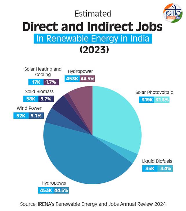 Out of the 1.02 million, Hydropower and Solar Photovoltaic were the largest contributors, employing the most individuals.